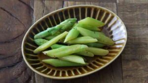 - アスパラの茎の太い方1/3ほどピーラーで皮を向き、食べやすい長さにカットする。