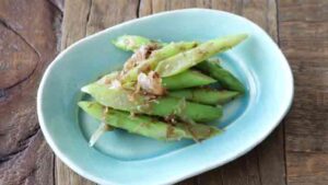それでは、アスパラのワサビ醤油和えを紹介します。