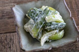それでは、青梗菜の七味マヨポン和えを紹介します。