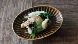 それでは、青梗菜のゆかりおかかポン酢和えのレシピを紹介します。