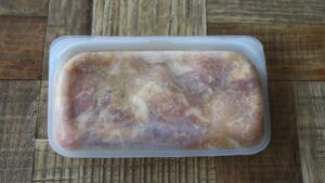 豚こま肉を使った、味噌漬けの下味冷凍レシピです。