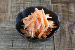 - 人参は細切りし、レンジ600wで1分20秒ほど加熱する。