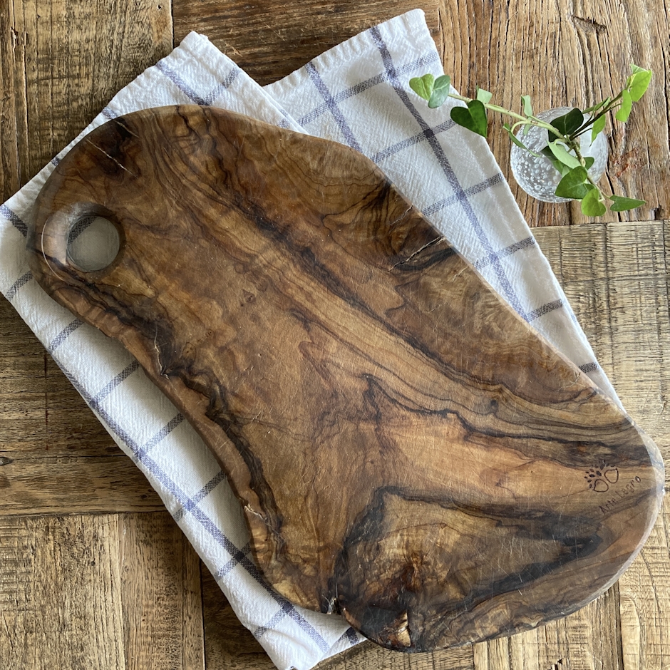 オリーブウッドのカッティングボード。一点物なので、全く同じ形はありません。