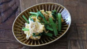 それでは、春菊と卵の和え物を紹介します。