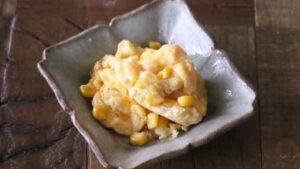 - コーンを炒めて1を流し入れ、チーズを乗せる。