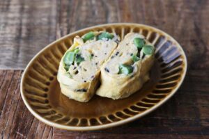 それでは、インゲンと黒ごまの卵焼きを紹介します。