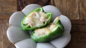 - ツナをピーマンに詰め、その上にチーズを乗せる。
