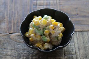 今回の副菜は枝豆コーンのツナマヨサラダです。