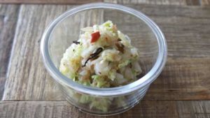 それでは、白菜の梅塩昆布ポン酢和えを紹介します。