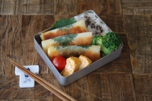 アルミ弁当箱の角型は浅く詰めやすい上に、仕切りもついているので初心者の方にはおすすめです。