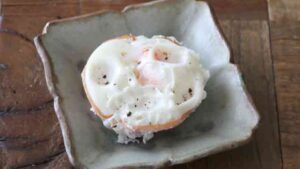 - ラップはせずそのままレンジ600wで1分20秒加熱し、冷めるまでそのままおく。(余熱で火を通します)