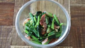 それでは、ほうれん草ベーコン炒めを紹介します。