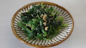 それでは、ほうれん草のピーナッツごま和えを紹介します。