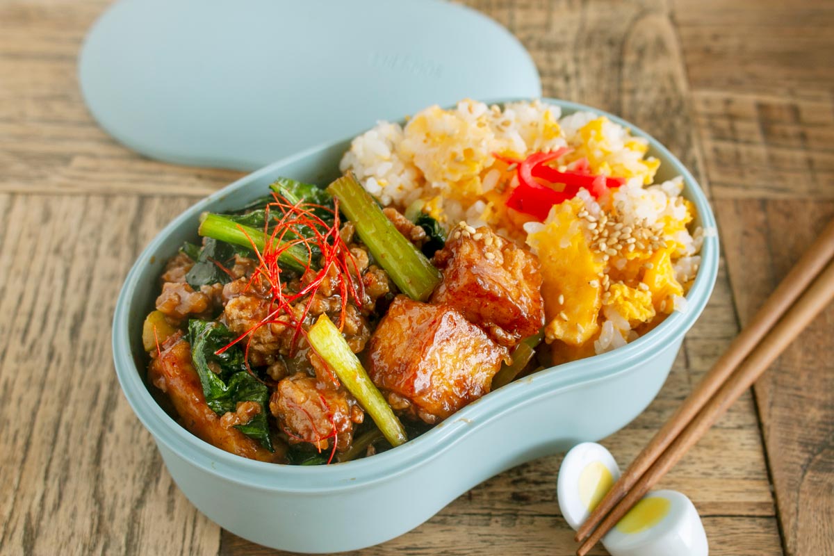 今回は「プチッと麻婆豆腐」を使った、小松菜と厚揚げの麻婆炒め弁当です。