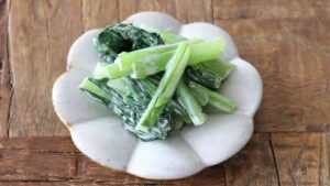 それでは、小松菜の麺つゆマヨ和えを紹介します。
