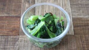 それでは、小松菜の塩昆布ナムルを紹介します。