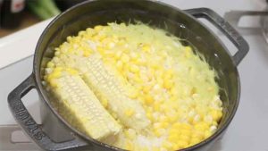 どうしても生のスイートコーンが手に入らないときは、冷凍のコーンを使っても簡単にできます。