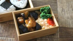 - 茄子は乱切りしてすぐに米油をまぶす。
