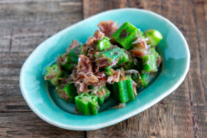 それでは、オクラのおかか和えを紹介します。