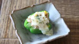 パパっとトースターで!ピーマンのツナマヨピザ風の副菜レシピ こんにちは、にぎりっ娘です。 ピーマンを使った、パパっとできちゃう副菜です。 具材をピーマンに詰めてトースターで出来るお手軽なレシピです。 トースターで作るから...