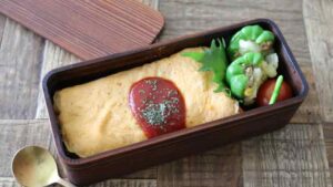 チキンライスを卵で包むことが難しいのかな?って思うかもしれませんが、お弁当の場合乗せるだけなので失しません!