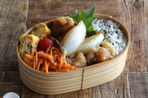 今回は、新玉と鶏もものバタポン炒め弁当です!