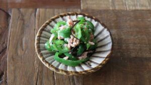 それでは、ピーマンのツナ塩昆布和えを紹介します。