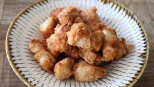 - カットした鶏のささみと調味料をよく揉み込んでしばらく置く。