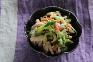 それでは、キュウリとカニカマの中華風サラダのレシピを紹介します。