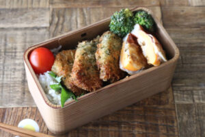 夜、衣をつけておけば、朝は揚げて詰めるだけなので楽ちんです。