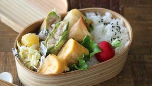 エビと鶏ひき肉の大葉春巻き弁当のレシピ