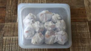 冷凍する場合は、一旦急速冷凍で冷まします。その後保存袋にいれ、冷凍庫に入れます。