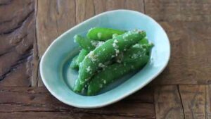 それでは、スナップエンドウの粉チーズ和えを紹介します。