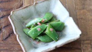 それでは、スナップえんどうの紅生姜和えを紹介します。