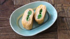 それでは、スナップエンドウの卵焼きを紹介します。