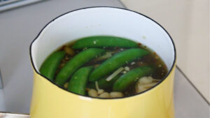 - 最後にスナップエンドウを入れ、ひと煮立ちしたら火を止め、余熱で火を通す。