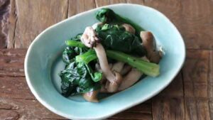 それでは、ほうれん草とシメジのゆかりポン酢和えを紹介します。