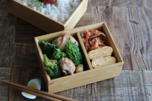 今回のお弁当は、旬のブロッコリーがメインのおかず「鶏とブロッコリーの炒めもの」