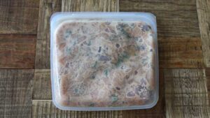 - 使うときは、前日に冷蔵庫に移すかレンジの解凍機能で解凍してください。